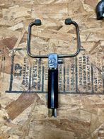 It is a gas-oxygen torch for use with borosilicate glass. (note the non-piloted tips, which indicate oxygen rather than air) I suspect this one may be a Kahle, but I am sure others made them as well. I have an old advertisement for them and will add it to this thread when I find it. (I collect vintage neon shop tools, so please keep me in mind if you later decide to part ways with it.)